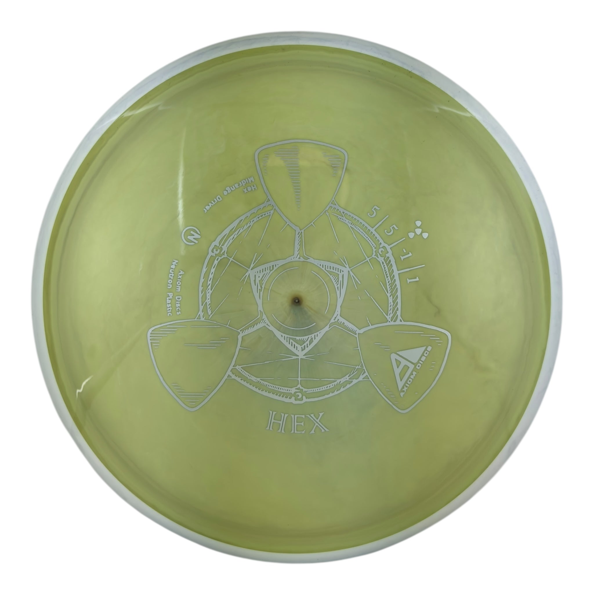 Mesmerizingly straight, with flight numbers of 5/5/-1/1, the Hex will find a place in anyone’s bag as a versatile and reliably straight midrange. At the highest arm speeds, the Hex will produce slightly understable lines from flat, but the 1 fade keeps it from flipping over completely. For lower arm speeds, the Hex has enough turn to make shaping lines a breeze. If you are looking for control in the woods, or simply a versatile line shaper, the Hex is the midrange for you. Available in Neutron plastic to start, add some magic to your game with the Hex!