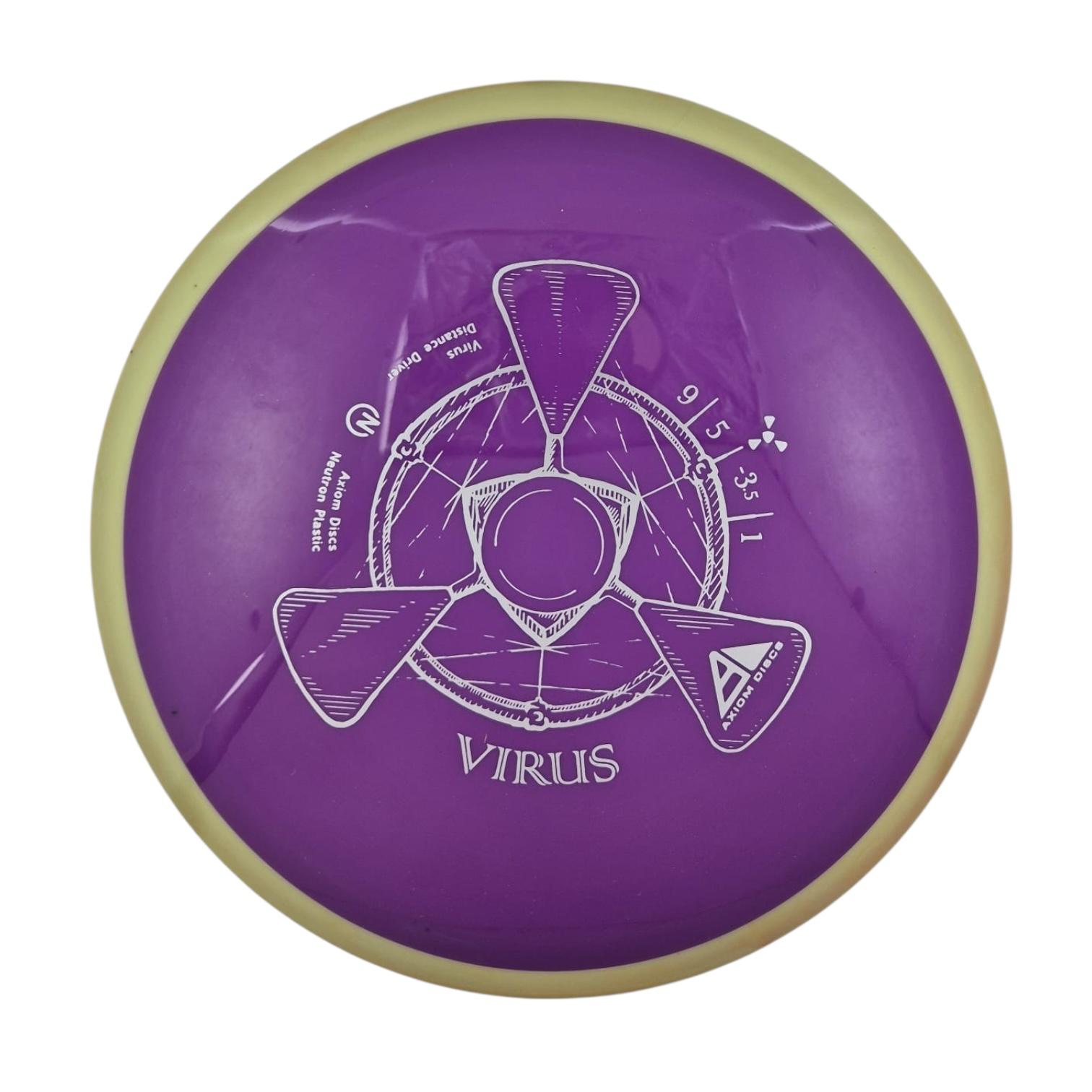 The Virus is Axiom’s easiest to throw distance driver, with a glide and responsive understability that keeps it in the air. Power throwers will be able to flex huge turnover shots with straight forward fade. Average throwers will be able to extend and shape lines using the Virus’ turn and gentle fade. Compared to the MVP lineup, the Virus resembles a worn-in Impulse.