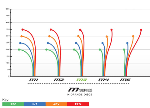 The Prodigy Disc M3 is an extremely reliable midrange disc, designed to be stable for moderate power throwers and for players who need a disc that will finish left (right handed throwers) with incredible consistency and control. The M3 midrange is good for all conditions and flies well in all wind conditions.