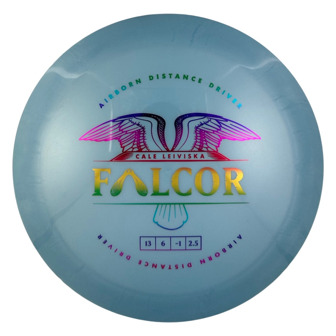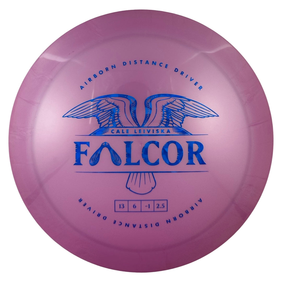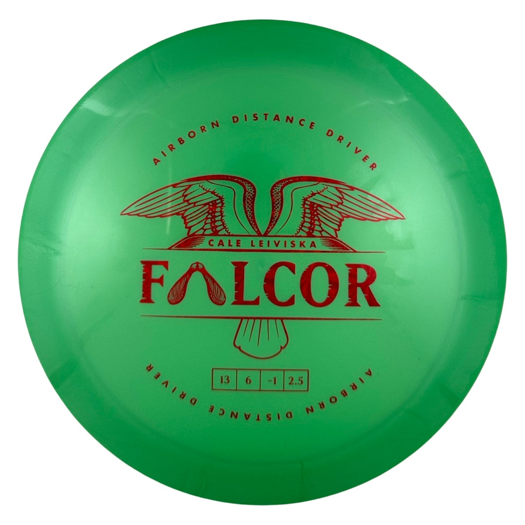 The Falcor is our collaboration with Cale Leiviska. It is an overstable driver that also packs in a lot of glide. It's a disc players will be able to lean on, and players with higher arm speeds will be able to get a max distance flight out of it.