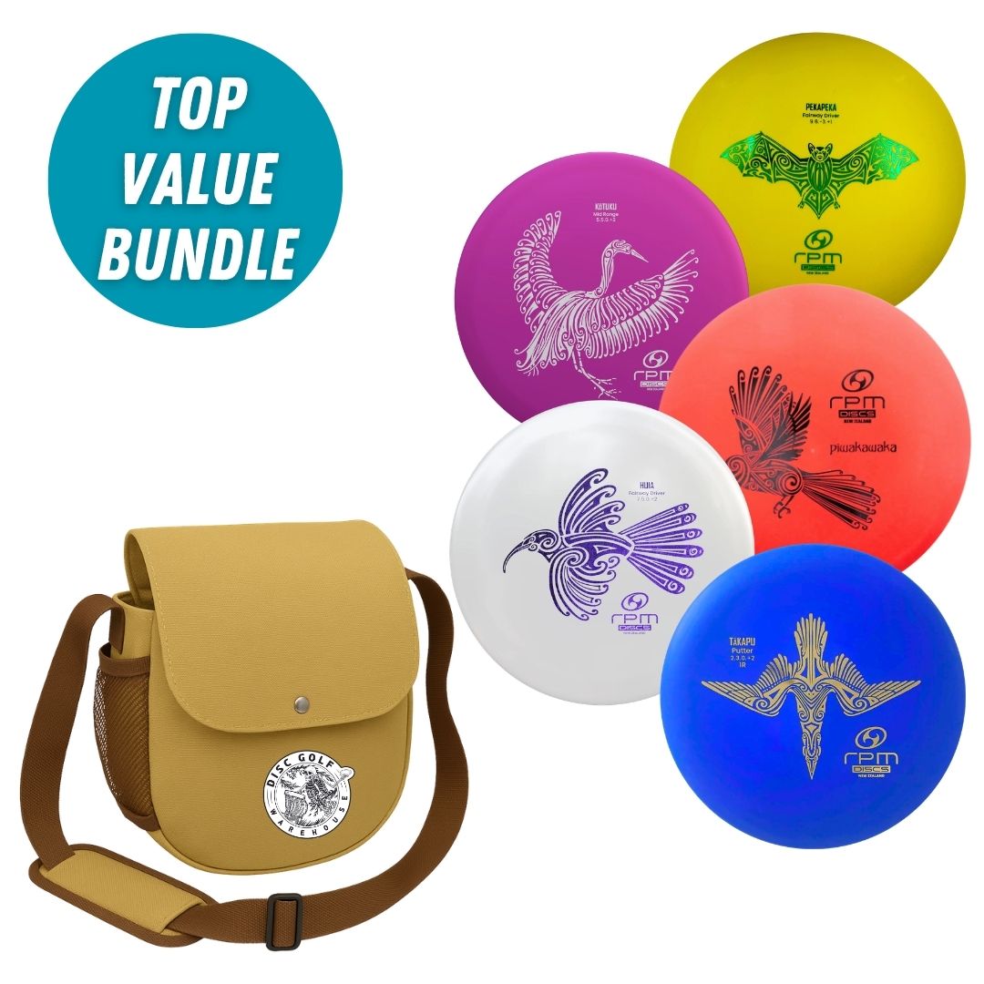 RPM is New Zealand owned and operated, the biggest disc golf manufacturer in the Southern Hemisphere, and they've backed the Australian disc golf scene for years. Every disc in this set features their tribal-style native bird artwork, and every one is moulded in RPM's Strata plastic with the tacky grip and medium stiffness that makes it easy to throw while you're finding your form.
